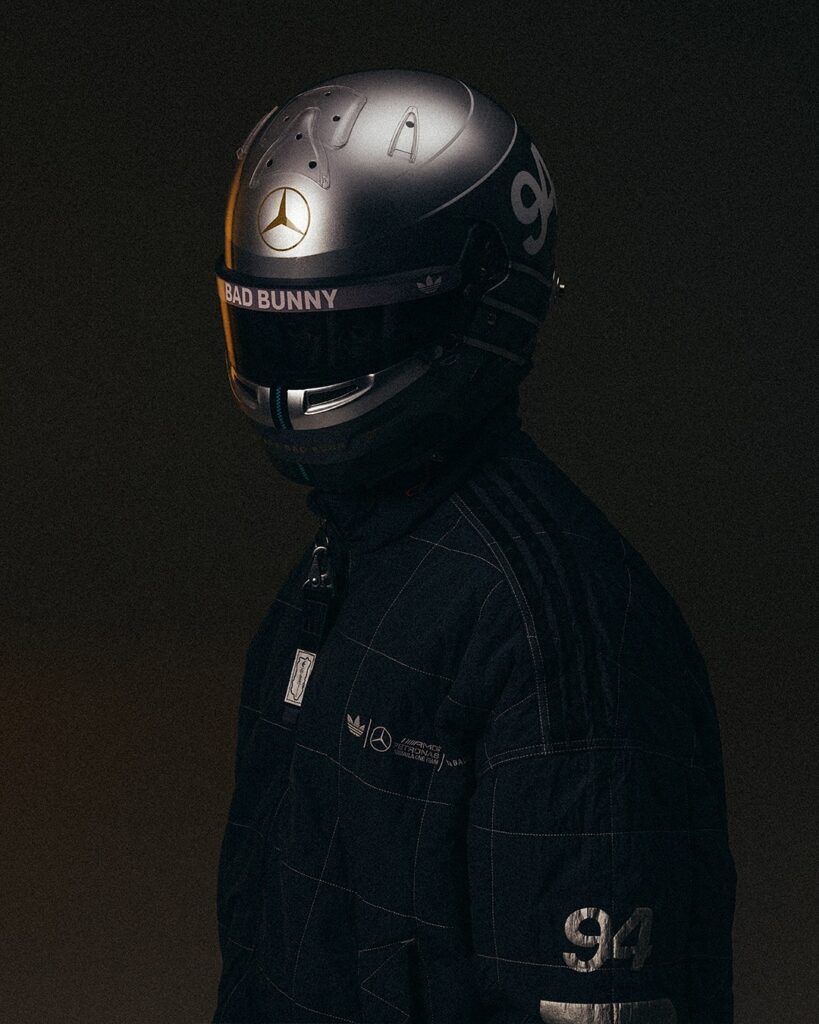 Adidas 與 Bad Bunny 這對長期合作夥伴找來 Mercedes-AMG PETRONAS,推出三方聯名系列。系列推出包括外套、T 恤、手套、頭盔等以賽車為主題的單品。其中,adidas Adiracer GT 鞋款成為系列中的最大亮點,展現品牌和 Bad Bunny 一貫的型格魅力。