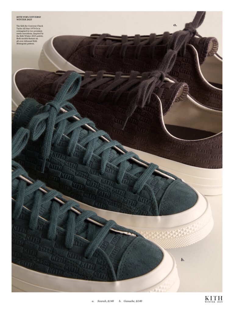 Kith 近日發布 2025 冬季新品,其中 &Kin 系列成為潮流圈的焦點話題,系列聯乘 6 個單位,包括 Giorgio Armani、Clarks Originals、ssstein、Avirex、Rolling Stone 以及 Converse,推出皮褸、西裝、長褸、板鞋等一系列男裝單品,延續一貫簡約高端街頭風格。