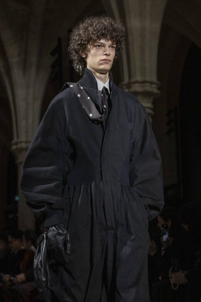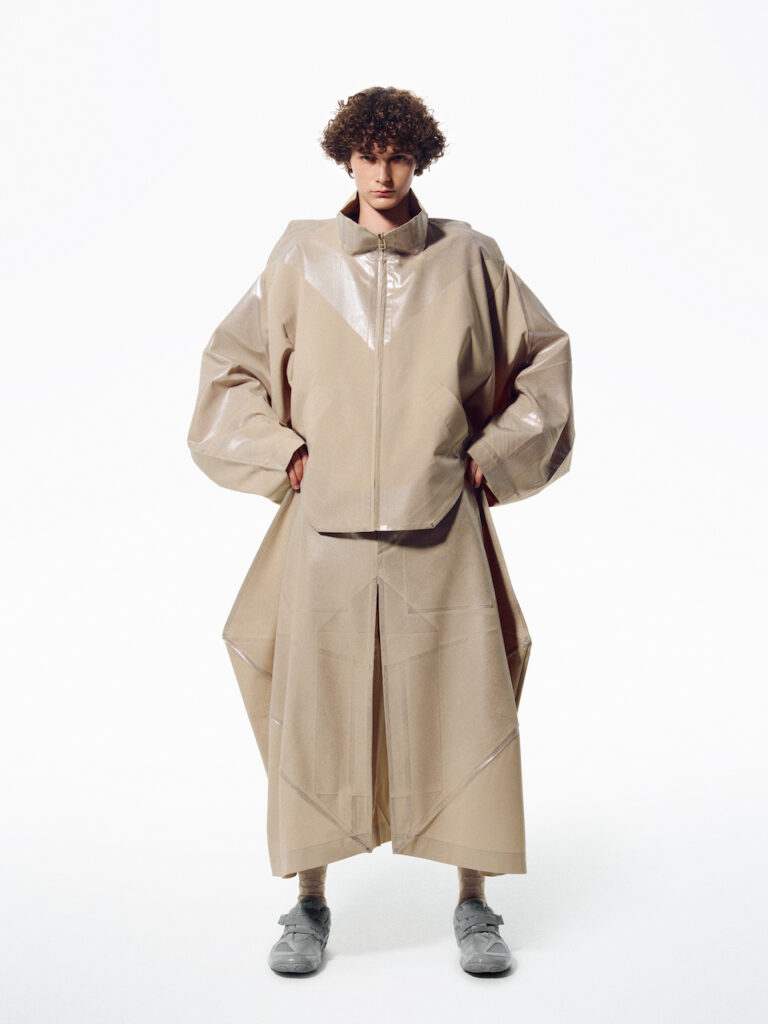 男裝經常強烈受到社會背景的制約——無論從「穿」或「做」的角度皆然。我們認為不必被「男人應該如何」所束縛,與其追求社會定義的「陽剛氣質」,我們更希望透過與男性身體結構、重力感、雕塑性特徵來對話,發現屬於男性的獨特之美,但這並非直接讓男性穿女性服裝那樣的做法。而因為每件服裝都從「一塊布」誕生,我們相信它能以更大的自由度,引導出新的男性表達方式。