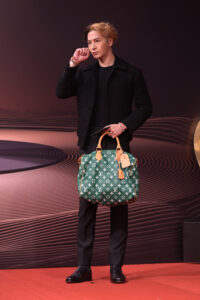 饒舌歌手、音樂人兼品牌大使王嘉爾 Jackson Wang 的粉紅色 Speedy P9 款掛上毛絨骰子吊飾,袋內有專業耳機、全家福即影即有照片、擊劍手套、樂譜、扭計骰與迷你運動鞋,展現多元興趣與家庭溫暖;刷新紀錄的籃球運動員兼品牌大使 Victor Wembanyama 的藍綠色 Speedy P9 款則配 Monogram 外星人吊飾,內有迷你籃球、撲克牌、幸運馬刺與有線耳機,透露出年輕一代的獨特個性。