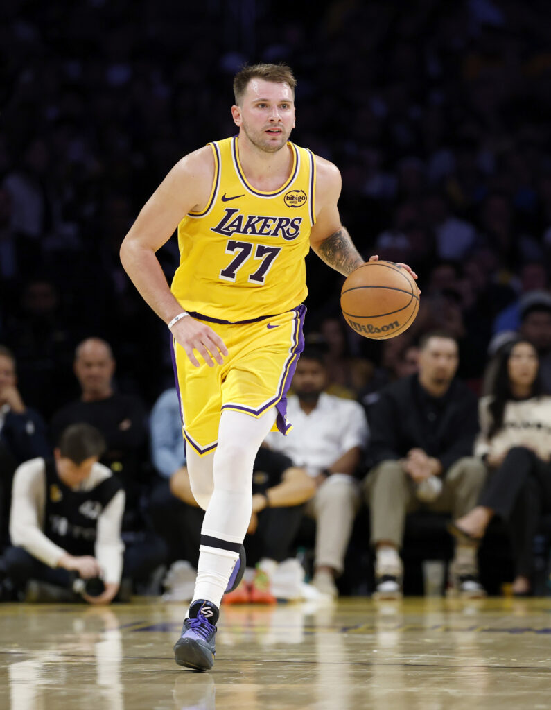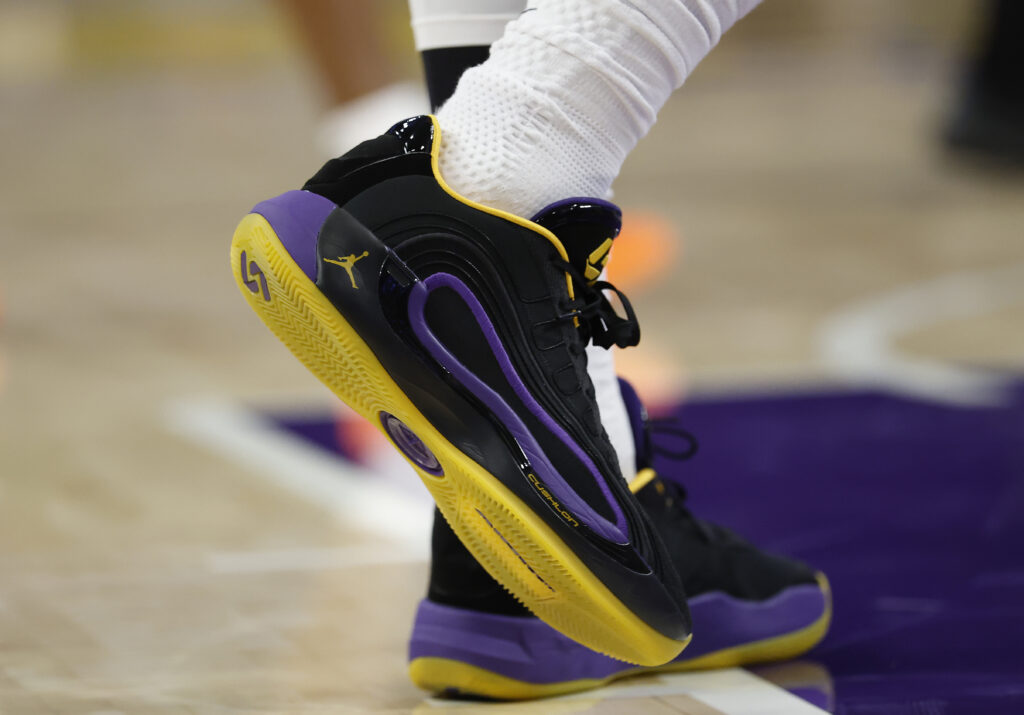 展現休季期間積極健身和訓練的成果的 Luka Doncic,以讓人耳目一新的體態登場,延續一貫穩健表現。首戰他穿上 Jordan Brand 為他打造的紫金配色 Luka 4 代表湖人上陣,呼應球隊標誌性的傳統配色。