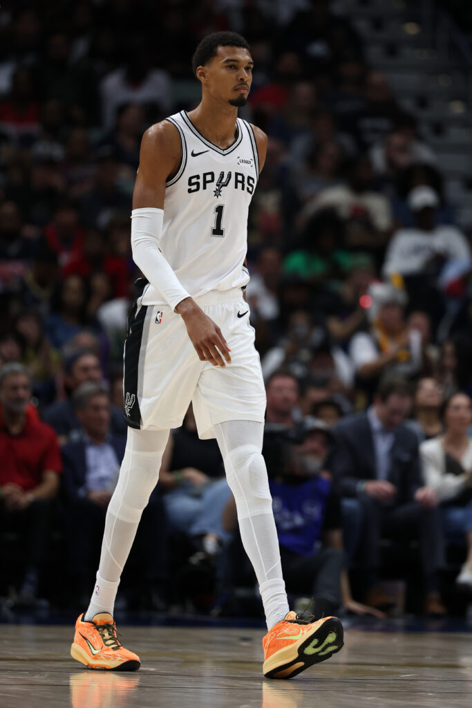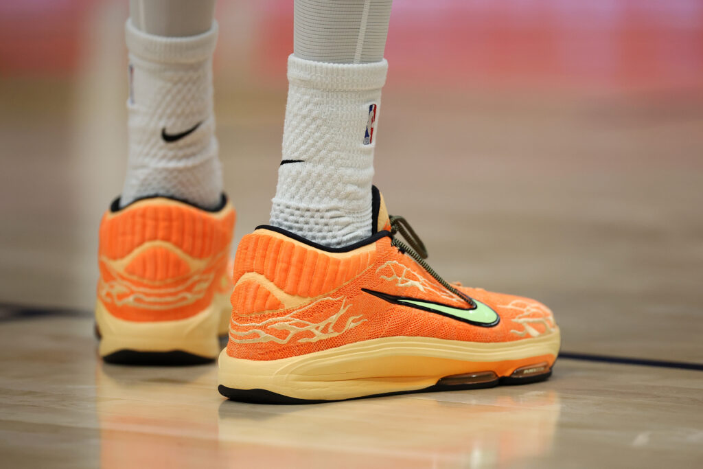 法國巨人 Victor Wembanyama 在熱身賽帶領馬刺拿下四連勝佳績後,在常規賽首戰延續火熱狀態,他更以全能表現豪取 40 分,球迷們紛紛期待恢復健康的他在新賽季打出歷史級別的表現。球鞋方面,他則延續與 Nike 自法國籃球甲級聯賽時開始的合作關係,以 G.T. Hustle 3 最新配色「Halloween」作賽,這款呼應其「Alien」綽號的鞋款,不但以橙綠迎合萬聖節氛圍,更配備品牌新一代緩震科技。