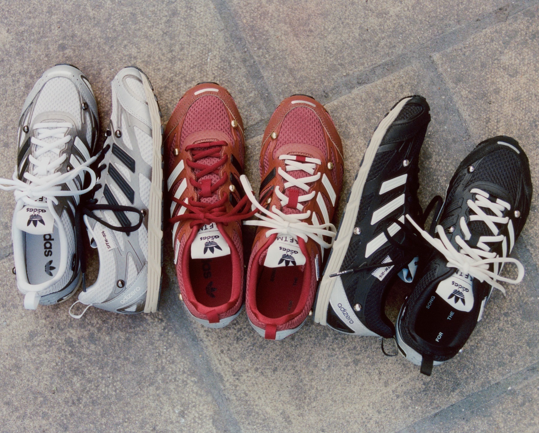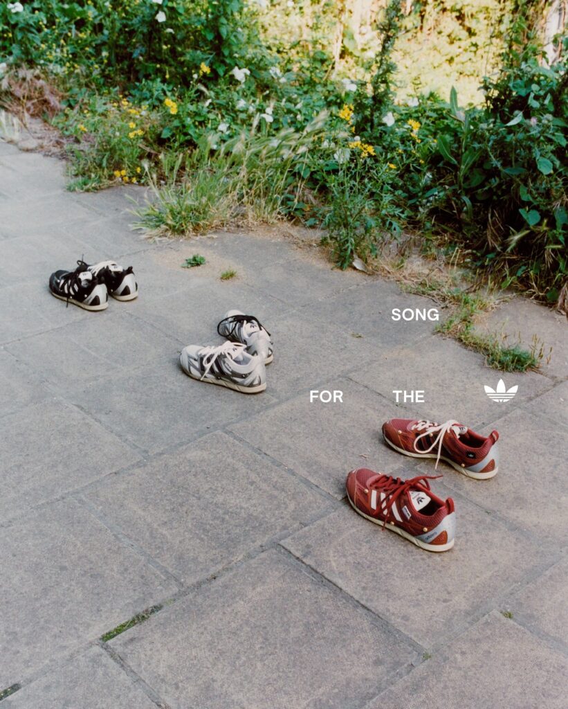 澳洲品牌 Song for the Mute 第六次聯名 Adidas Originals 推出服裝系列。這次合作將推出兩雙全新鞋款「SFTM-007 Taekwondo Mei」和「SFTM-006 Adizero PR」。前者保留其跆拳道鞋型,並添加彈性收褶鞋口,鞋頭採用麂皮材質,以卡其色、沙色和黑色呈現。Adizero PR 則打破其經典賽道風格,採用復古橡膠中底,並以黑色、白色和紅色呈現。