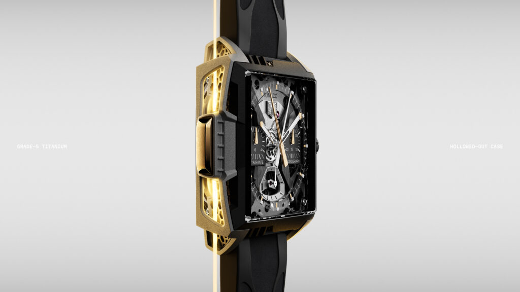 在今次錶展的高科技腕錶之中,TAG Heuer Monaco Split-Seconds Chronograph Air 1 絕對是矚目焦點。品牌以五級鈦金屬配合 SLM 雷射熔融沉積技術打造錶殼,這種來自航太及醫療領域的增材製造工藝,令錶殼可以呈現複雜立體線條,同時保持超輕重量,整枚錶僅約 85 克。