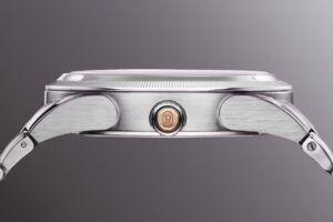 今次 Parmigiani Fleurier 在錶展上推出不鏽鋼版本的 Tonda PF Minute Rattrapante Arctic Rose,延續品牌近年主打的 Tonda PF 設計語言。這枚腕錶最特別的地方,是其 Minute Rattrapante 功能並非傳統計時,而是可以為當下時間「加一分鐘」或「加五分鐘」,由 10 點及 8 點位置按鈕控制,透過錶冠復位。