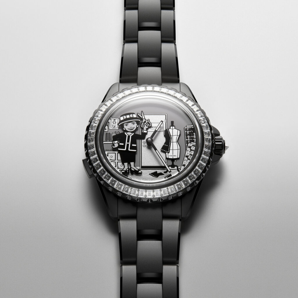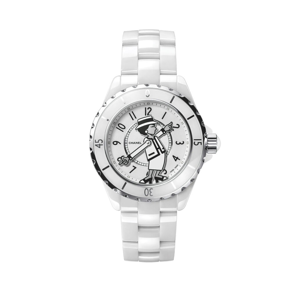 被譽為 J12 史上最可愛最富玩味的錶款,將卡通造型 Chanel 女士雙手化為指針。
