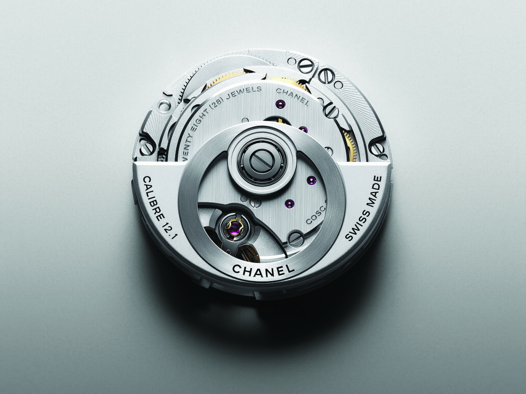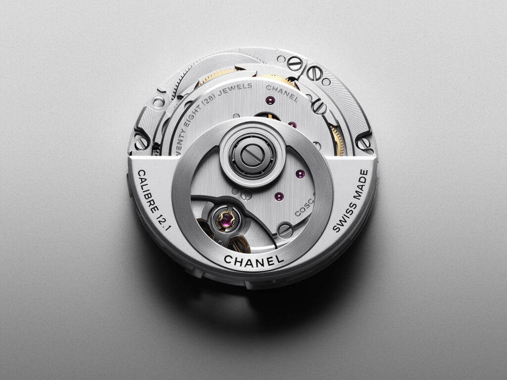 2019 年,適逢 J12 即將步入 20 周年,在腕錶創意工作室總監 Arnaud Chastaingt 領軍下,迎來了 J12 史上最低調卻最徹底的進化。系列中最經典的 38mm 款式,在不動搖外觀神韻的前提下,首次改換上由 CHANEL 與專業錶廠 Kenissi 共同研發的 Caliber 12.1 自動上鏈機芯。這枚取得 COSC 瑞士官方天文台認證的機芯,具備 70 小時動力儲存,底蓋亦首度採用透明設計,展露新機芯的獨特風韻,自動擺陀上鏤空的圓形,滑動間演繹著 CHANEL 獨有的優雅韻律。
