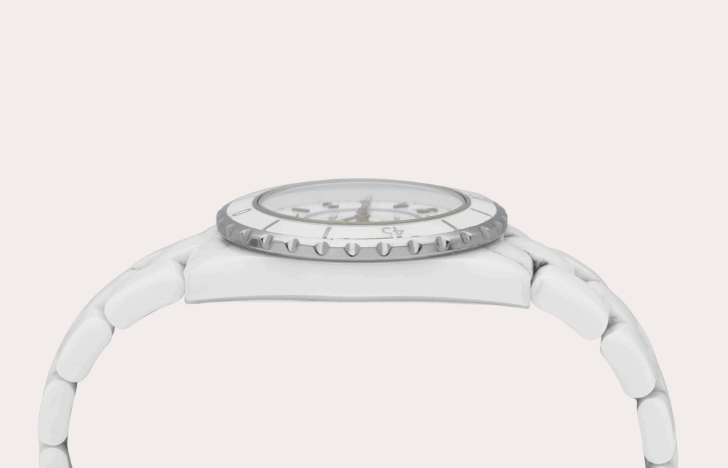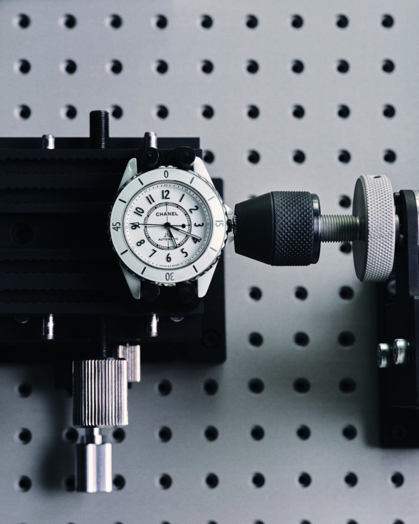 自 J12 面世,CHANEL 採用前衛手法及應用革命性的陶瓷物料,極為耐用不易刮花,抗磨損性能比精鋼高七倍,但更輕巧而且觸感溫軟,是 CHANEL 製錶極有代表性的材料之一。製錶廠更全權負責研發及製作的所有工序,監督陶瓷生產的整個過程,腕錶鏈帶的每一個鏈節皆由工匠人手精心組裝。
