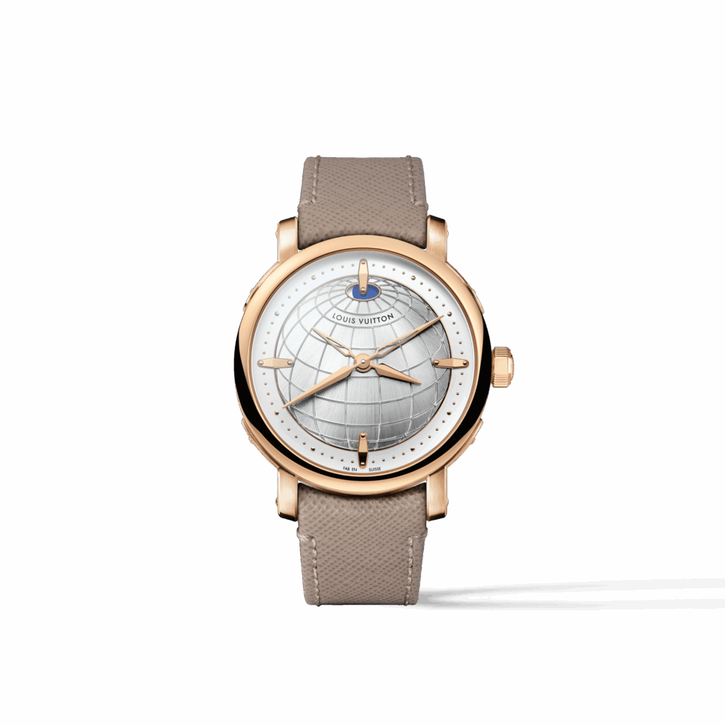 Louis Vuitton 今年展現出「集團內高級製錶玩家」的姿態:Escale 系列以旅行 DNA 牽引複雜功能。Escale Worldtime 將世界時區功能帶回此系列,並透過微繪及琺瑯工藝,把 24 小時環上的每個城市化為融合 Louis Vuitton 歷史圖騰的「旗幟」意象,兩個版本分別對應一般款式與飛行陀飛輪款式。更特別的是 Escale Twin Zone:不僅增添第二時針,更加入第二分針,旨在處理那些具有「半小時或四十五分鐘」時區偏移的少數地區,將旅行腕錶的實用性推至近乎偏執的境界。這些設定未必人人需要,卻清晰傳達:LV 在製錶領域已不再滿足於造型創新,更旨在建立專屬的功能語彙。