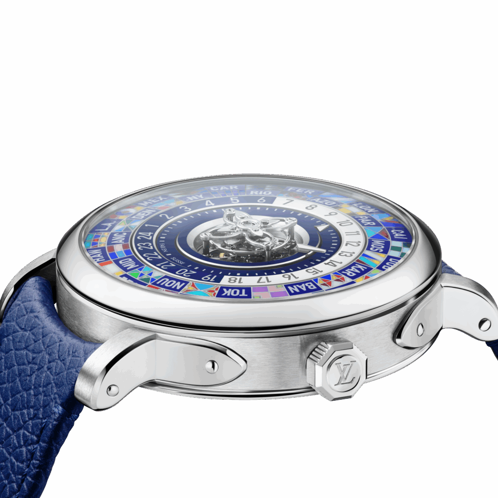 Louis Vuitton Escale Worldtime 透過微繪琺瑯工藝,把 24 小時環上的每個城市化為融合品牌歷史圖騰的「旗幟」意象。
