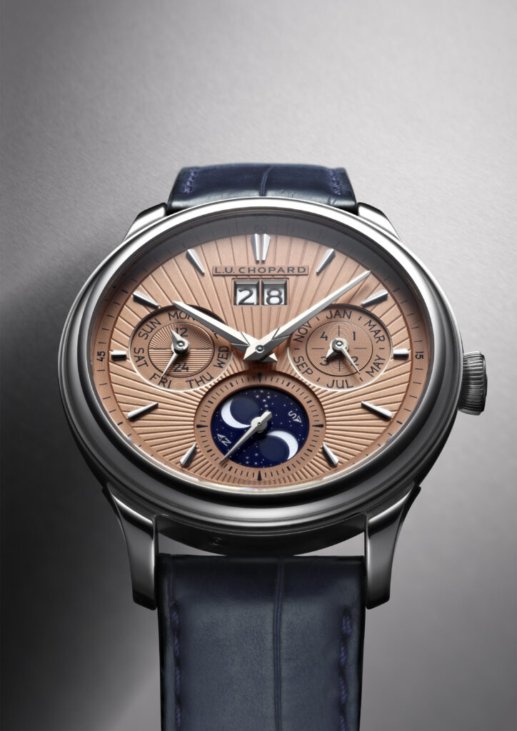 L.U.C Lunar One 的魅力,不僅在於它兼具萬年曆與月相功能,更在於它展現了「內外兼修」的製錶哲學。這枚腕錶的月相顯示穩定而精準,而驅動它運行的機芯本身,更宛如一件藝術珍品:打磨精緻的橋板、手工修飾的倒角與波紋,無一不是傳統製錶工藝的極致展現。這種對細節的堅持並非為了炫耀,而是一種價值觀的體現——在月亮盈虧的背後,蘊藏著對時間的敬畏與對工藝的尊重。配戴這枚腕錶,彷彿將一段歷史、一份匠心,以及那輪永恆變幻的明月,一同繫於腕間。