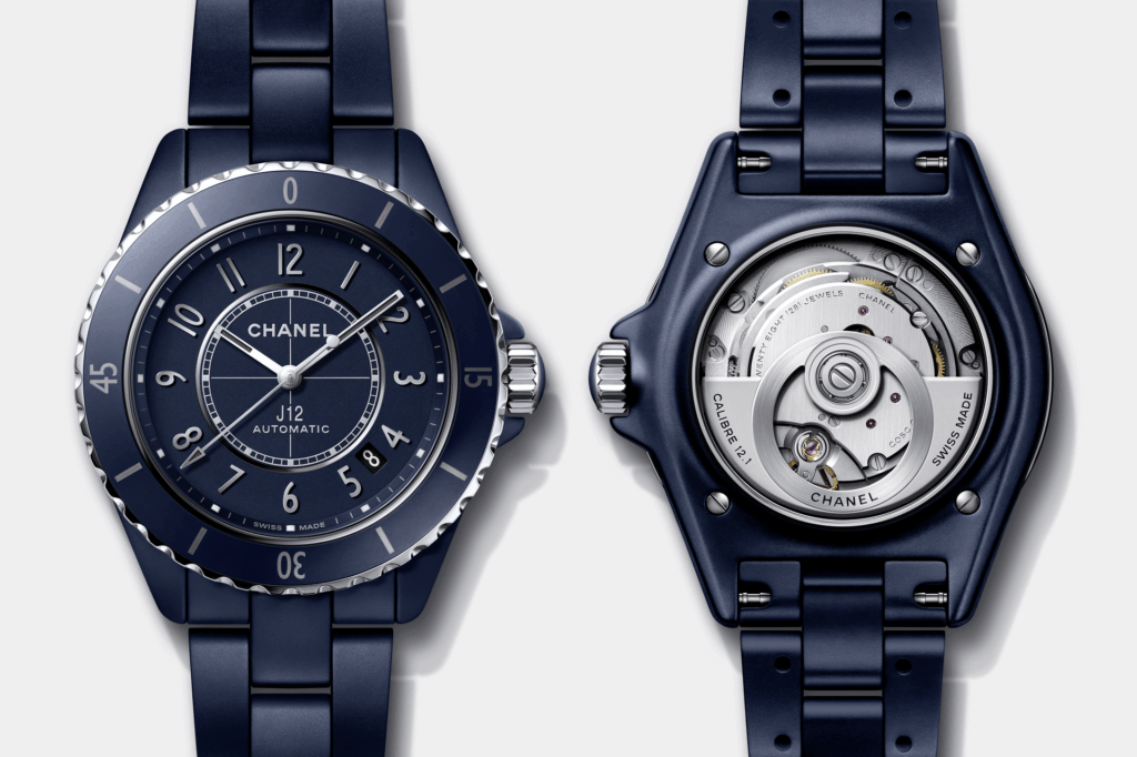 另一重點,是 J12 Bleu 正式由限量系列轉為常設款。這款深藍陶瓷腕錶去年推出時已引起關注,今年回歸並提供 33mm 及 38mm 兩個尺寸,分別搭載 COSC 認證的 Caliber 12.2 及 12.1 自動機芯。這種介乎黑與藍之間的色調,經過多年研發而成,現正式與黑、白並列為 J12 的三大標誌色。