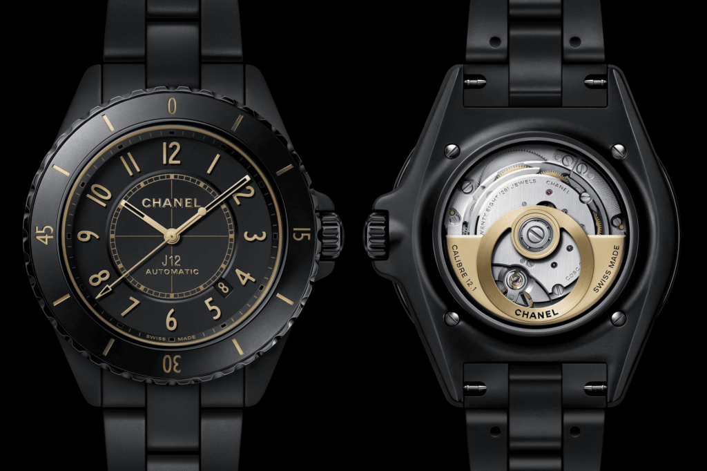 同時,J12 Golden Black 限量版延續黑色陶瓷設計,加入鍍金時標與細節,強化視覺對比;42mm 版本更配備鍍金自動陀,透過藍寶石底蓋展示,進一步提升觀賞性。