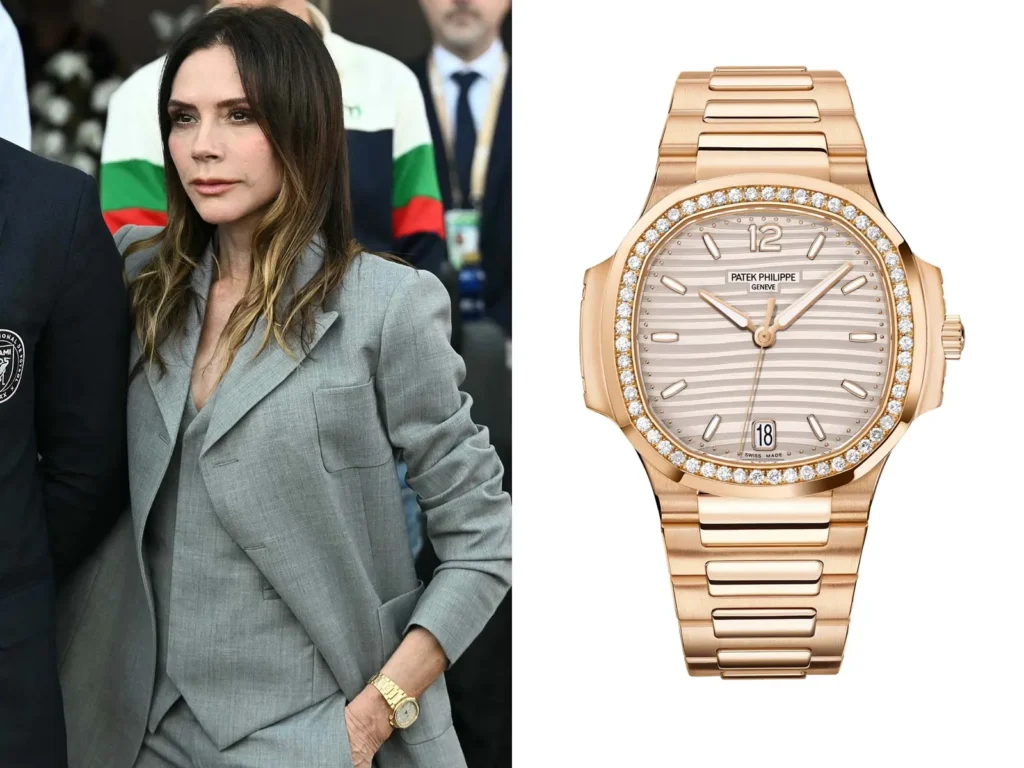 Victoria 的玫瑰金 Patek Philippe Nautilus 7118/1200R,是她多年來風格的最佳縮影:簡約、精準、低調就能展現氣場。波浪紋錶盤、鑽石錶圈,加上 Nautilus 一貫的優雅線條,完全是「Posh Spice」腕錶化的寫照。