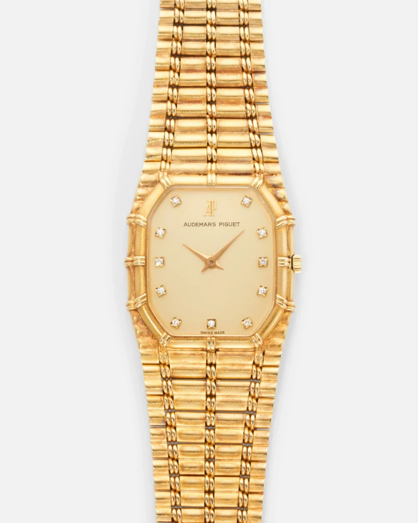 Romeo 一向跟貼潮流,他選的 Audemars Piguet Royal Oak Bamboo 正是近年年輕收藏家最渴求的復古 AP 型號之一。27mm 尺寸、帶竹節感的鏈帶設計,加上本身的稀有度,令它在不同場合都非常顯眼。Romeo 的風格偏前衛、偏 Y2K,而這枚 AP 正好把這股氣質完美展現於手腕上。