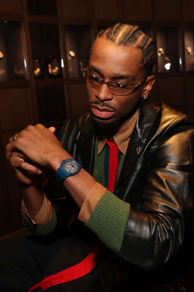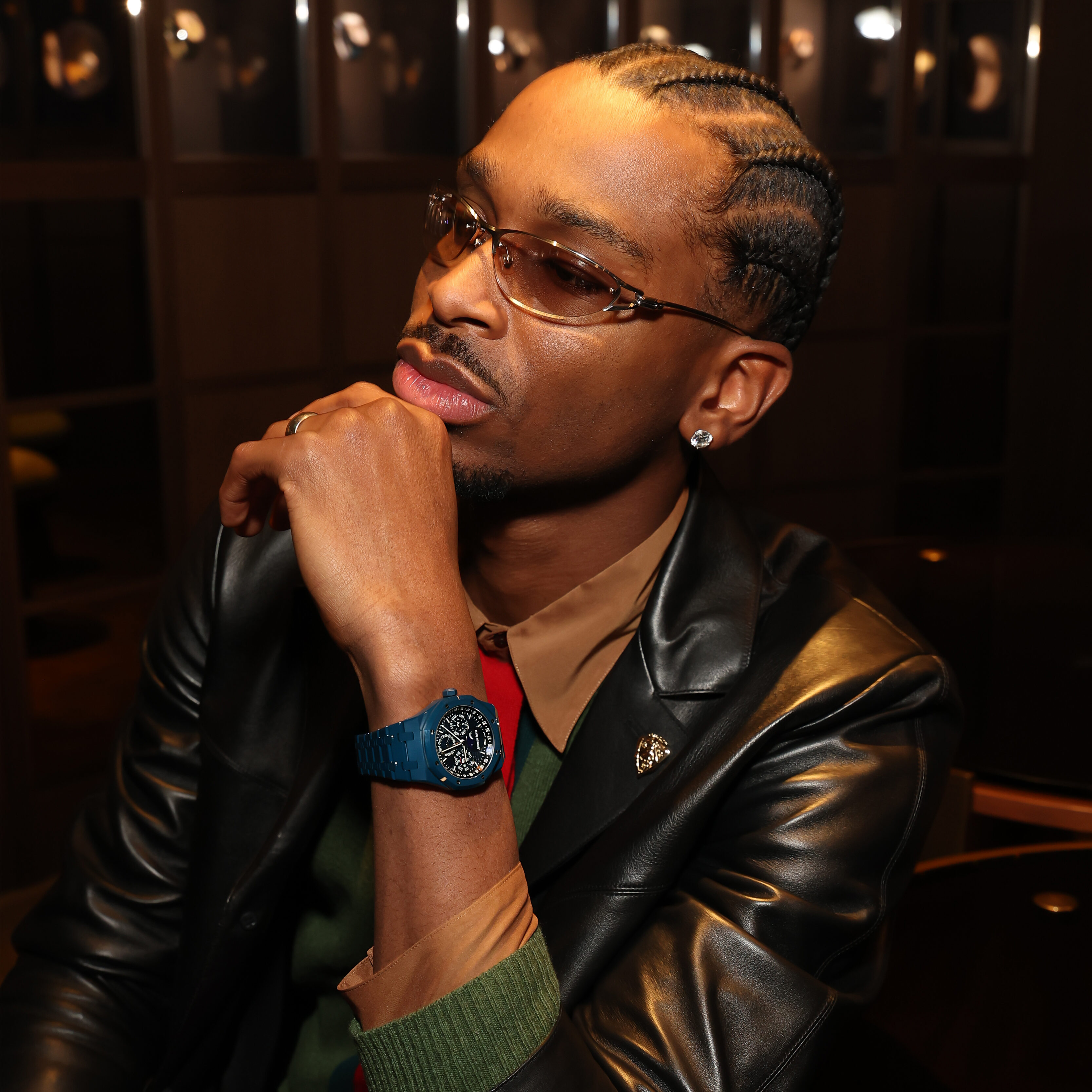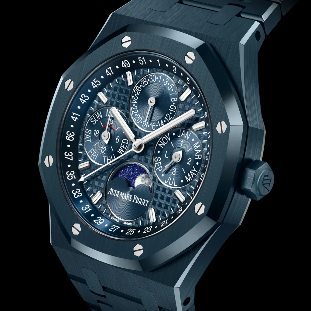 為了慶祝這一里程碑時刻,Audemars Piguet 特別在洛杉磯的 AP House LA 舉辦盛大派對,現場星光熠熠。Shai 親自現身,並佩戴品牌最新腕錶作品——2026 年 Royal Oak 萬年曆 41 毫米藍色陶瓷款(Royal Oak Perpetual Calendar 41 mm in blue ceramic)。這款全新腕錶結合了 Royal Oak 系列標誌性的八角形錶圈與一體式設計,採用先進的藍色陶瓷材質,展現出低調卻極具科技感的現代奢華。萬年曆功能精準顯示日期、星期、月份甚至閏年,搭配藍色陶瓷的冷冽質感,完美呼應 Shai 在球場上的沉穩與精準風格,也象徵著 AP 將傳統高級製錶與當代創新材質的無縫融合。