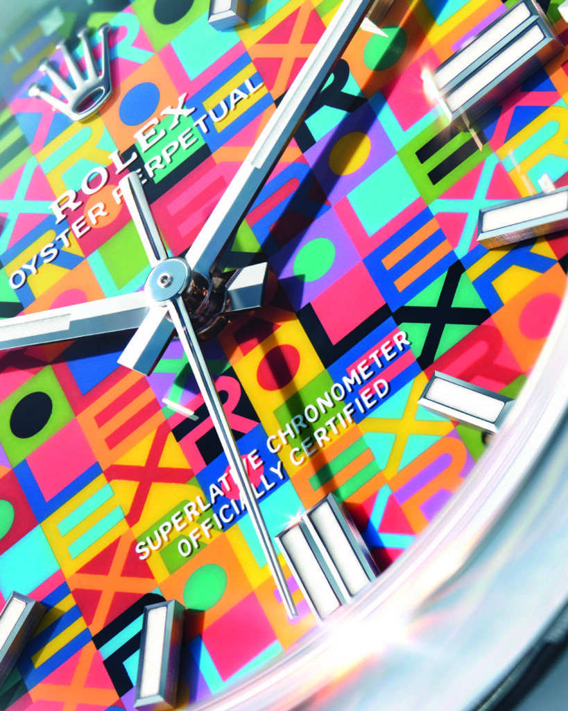 如果說 Rolex 過去幾年偶爾會推出一些讓人初看時有點意外、但越看越上癮的作品,那麼今年的 Oyster Perpetual 36「Jubilee Dial」,無疑就是這類型代表。這枚新作最搶眼之處,當然是錶盤:多色圖案交錯排列,反覆拼湊出 “ROLEX” 字樣,視覺非常鮮明,也帶點近年少見的俏皮感。