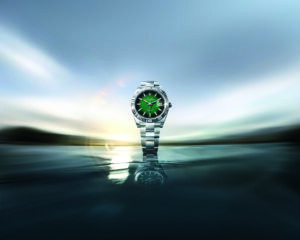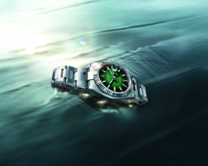 這款作品最吸引人的地方,在於 Rolex 並沒有把它做成單純的雙色版本,而是將百年紀念的細節仔細地藏進設計裡。例如 6 點鐘位置以「100 YEARS」取代傳統 “SWISS MADE”,上鏈錶冠鐫刻浮雕數字「100」,而分鐘軌道的綠色刻度與綠色 “ROLEX” 字樣,亦令整枚腕錶在視覺上更有層次。