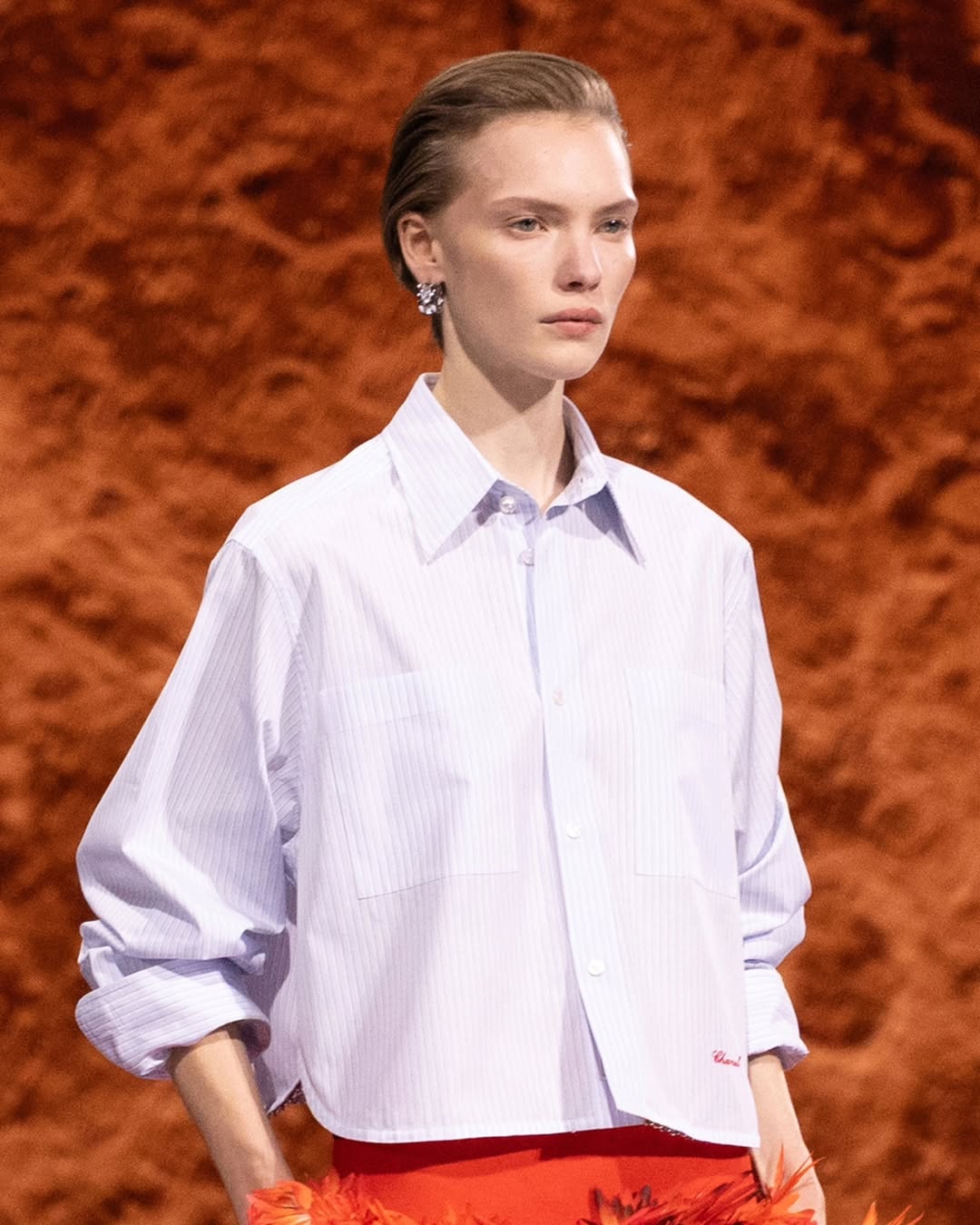 Matthieu Blazy在為Chanel 設計的首個系列中,將「愛」定為核心創作理念,他說:「Chanel根植於愛。」,於是他並將這份情感融入最簡單卻意義深遠的單品——襯衫。他說:「Chanel根植於愛。」Blazy選擇與Charvet合作,運用其頂級面料與精湛技藝,創作出三件襯衫,這不僅是對Charvet百年工藝的致敬,更是一場與Gabrielle Chanel對話,同時延續她的革新精神。